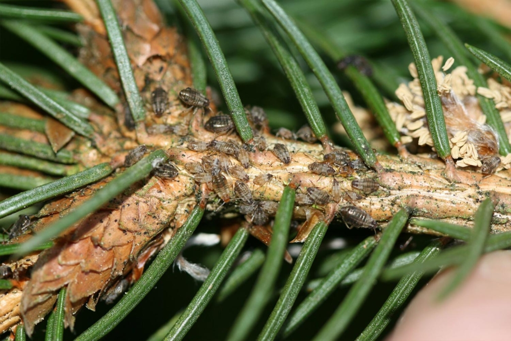 Тли поражают практически любые деревья. Они высасывают из листьев ассимиляты и загрязняют листья своими выделениями — так называемой медвяной росой.